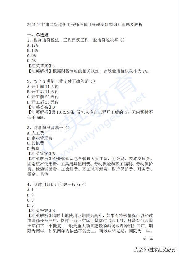 甘肃省二级建造师真题(甘肃省二级建造师历年真题) 2021年甘肃省二级造价工程师执业资格考试已结束,我们最关心的还是考后能否得到答案,以下为网友回忆内容,仅供参考。 免责申明:部分内容素材来源于网络,回忆内容,不能保证准确性,不代表本平台观点,若有侵权,请联系删除。