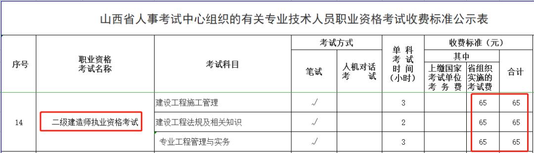 山西:二建每科65元
