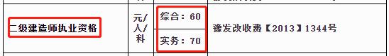 河南:综合60元、实务70元