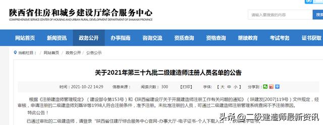陕西省今天发布了2021年第39批二建注册人员名单的公告,随小编一起来看下吧!
